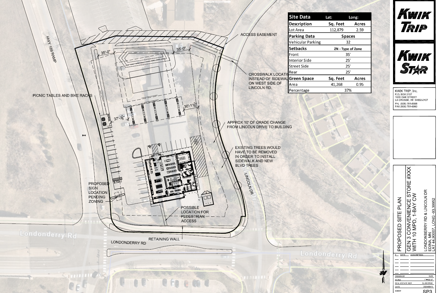 Share 5780 Lincoln Drive-Kwik Trip Sketch Plan on Facebook Share 5780 Lincoln Drive-Kwik Trip Sketch Plan on Twitter Share 5780 Lincoln Drive-Kwik Trip Sketch Plan on Linkedin Email 5780 Lincoln Drive-Kwik Trip Sketch Plan linkA Sketch Plan proposal has been submitted to tear down the existing 22,846 square foot office building 5780 Lincoln Drive and build a 9,176 square foot Kwik Trip, with 10 fueling stations. The proposed Kwik Trip would be open 24 hours per day and would not have a car wash.
